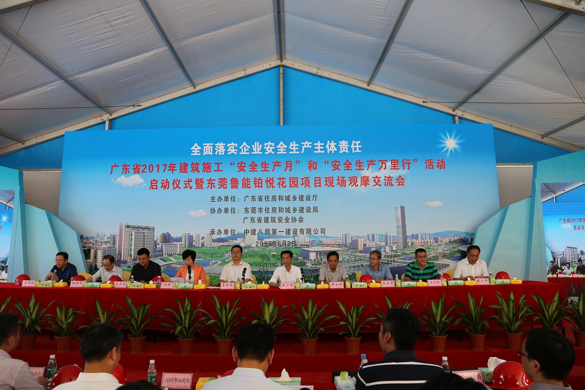 2017年全省建筑施工“安全生產(chǎn)月”和“安全生產(chǎn)萬里行”活動(dòng)啟動(dòng)儀式暨現(xiàn)場觀摩交流會(huì)6月2日在東莞市茶山鎮(zhèn)魯能鉑悅花園項(xiàng)目工地舉行。啟動(dòng)儀式暨現(xiàn)場觀摩交流會(huì)由省住房城鄉(xiāng)建設(shè)廳副廳長劉瑋主持,省住房城鄉(xiāng)建設(shè)廳廳長、東莞市副市長張少康出席并作動(dòng)員講話,住房城鄉(xiāng)建設(shè)部工程質(zhì)量安全監(jiān)管司司長李如生宣布2017年廣東省建筑施工“安全生產(chǎn)月”和“安全生產(chǎn)萬里行”活動(dòng)正式啟動(dòng)。住房城鄉(xiāng)建設(shè)部工程質(zhì)量安全監(jiān)管司、省安委辦、省消安委辦、項(xiàng)目建設(shè)、施工單位有關(guān)負(fù)責(zé)同志以及來自全省各地級市、東莞市各縣區(qū)住房城鄉(xiāng)建設(shè)行政主管部門分管領(lǐng)導(dǎo)和安全科(處)長、施工安全監(jiān)督機(jī)構(gòu)、行業(yè)協(xié)會(huì)代表以及部分施工、監(jiān)理企業(yè)分管安全生產(chǎn)工作負(fù)責(zé)人、項(xiàng)目負(fù)責(zé)人、省住房城鄉(xiāng)建設(shè)廳機(jī)關(guān)及廳直屬單位的代表等近1000人參加了活動(dòng)。